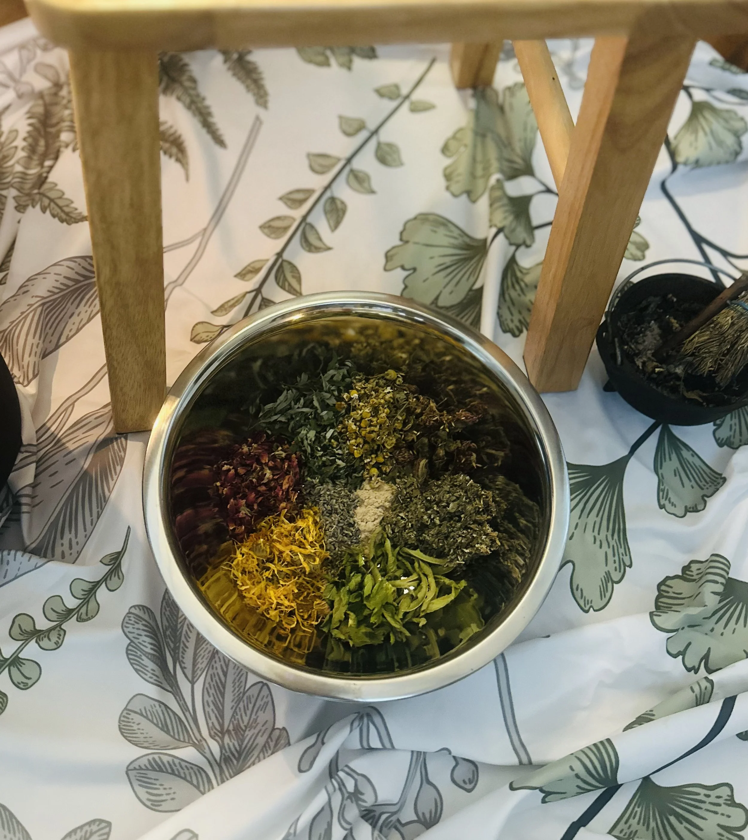 This steam is made with 100% natural, organic, non-GMO herbs and flowers. Most grown right in my garden. You can use them with a steam system you already have, squat over your boiling pot of water, or place the pot under a chair with holes or slits. Wrap a sheet, towel, blanket, tarp…whatever you have! And stem your divine famine parts into a state of bliss. Please use proper safety precautions while steaming.